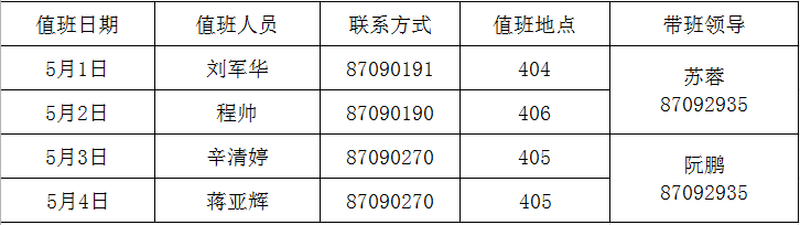 注:1. 值班时间:上午8:30—11:30,下午3:00—6:00 。