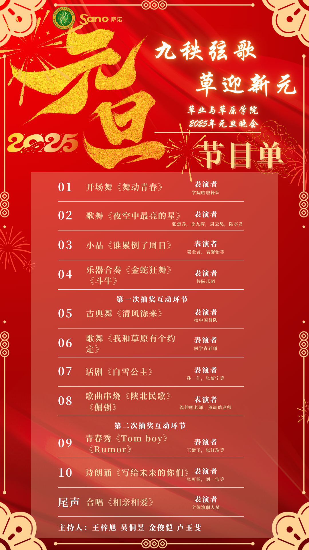 为了强化榜样引领,丰富师生校园文化生活,凝聚奋进力量,学院定于12月23日(星期一)19:00,在南校区绣山活动中心大厅举办“哔咔漫画 2024年学生表彰大会暨2025年元旦晚会”(节目单附后),晚会设有互动抽奖环节,敬请广大师生按时参加。