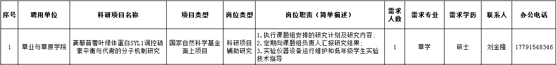 关于科研助理岗位需求计划的公告