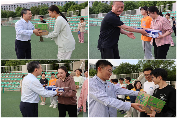 阮鹏副书记和辅导员老师还为运动员们准备了牛奶、面包等慰问品,为参赛的运动员们送上鼓励与支持。同学们纷纷表示感受到了学院老师的温暖,更加坚定了勇创佳绩的决心。