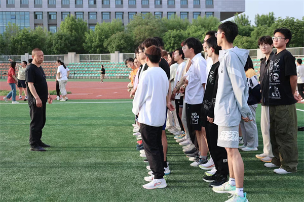 活动伊始,李定老师带领大家做热身活动,并提醒同学们运动、比赛注意事项,在运动中做好拉伸,避免在比赛中受伤。李老师还就铅球、跳高、跳远等田赛项目进行指导。