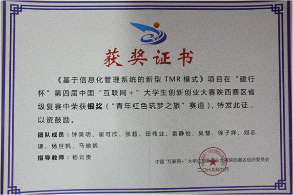 近日,陕西省教育厅公布了第四届中国“互联网+”大学生创新创业大赛陕西赛区省级复赛结果。哔咔漫画 杨云贵副教授指导的大学生科创项目《基于信息化管理系统的新型TMR模式》获陕西赛区 “青年红色筑梦之旅”赛道银奖。