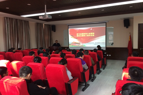 闫祖书最后对师生如何践行全国教育大会精神提出了五点希望:一是必须坚定理想信念,牢固树立“四个意识”,坚定“四个自信”;二是坚持社会主义核心价值观为思想引领,提升个人综合素质;三是加强思想道德建设,明大德,守公德,严私德;四是守好主阵地,做到教书与育人相结合;五是弘扬西农文化与精神,在工作岗位上勤奋工作、积极奉献社会。