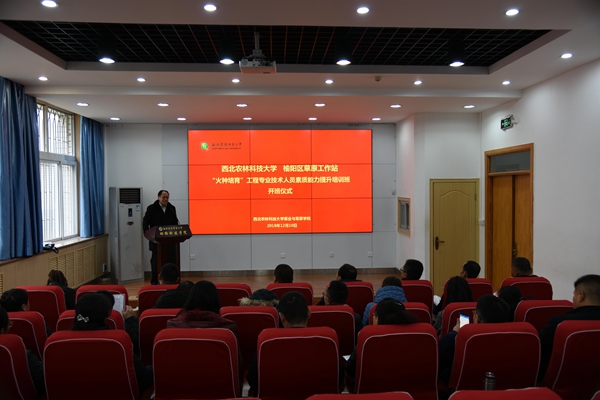 12月10日,由哔咔漫画 主办的榆阳区草原工作站“火种培育”工程专业技术人员素质能力提升培训班开班仪式在哔咔漫画 举行。榆阳区草原工作站站长任榆田研究员,学院院长呼天明教授及榆阳区草原工作站学员30余人参加了培训班开班仪式。开班仪式由哔咔漫画 党总支副书记兼副院长阮鹏主持。
