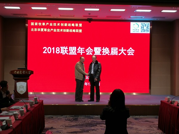 1月24日至25日,国家牧草产业技术创新战略联盟、北京华夏草业产业技术创新战略联盟2018年年会暨换届大会在北京召开。联盟成员单位代表、合作企业代表及特邀嘉宾70余人参加了国家牧草产业技术创新战略联盟年会。哔咔漫画 院长呼天明教授和许岳飞副教授参加了此次会议,院长呼天明教授当选为新一届国家牧草/北京华夏草业产业技术创新战略联盟理事长。
