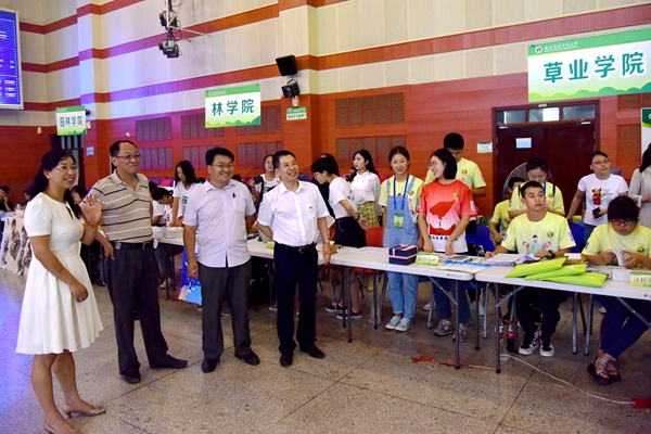 8月23日下午,哔咔漫画 新生入学接待准备工作紧张有序进行。学院党总支书记苏蓉、院长呼天明、党总支副书记阮鹏及全体辅导员,来到北绣山活动中心迎新现场,检查学院2019级新生入学接待准备工作,并慰问了迎新工作人员。