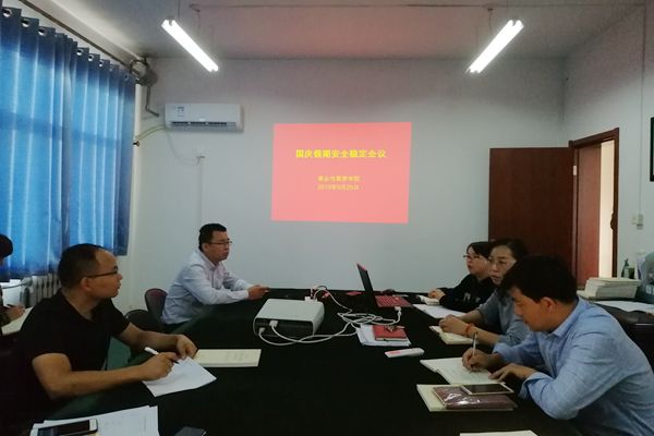 为隆重庆祝中华人民共和国成立70周年,营造稳定安全的节日氛围, 9月25日下午,学院在409会议室召开国庆假期稳定安全工作会议。学院全体教职工参加了会议,会议由党总支书记苏蓉主持。