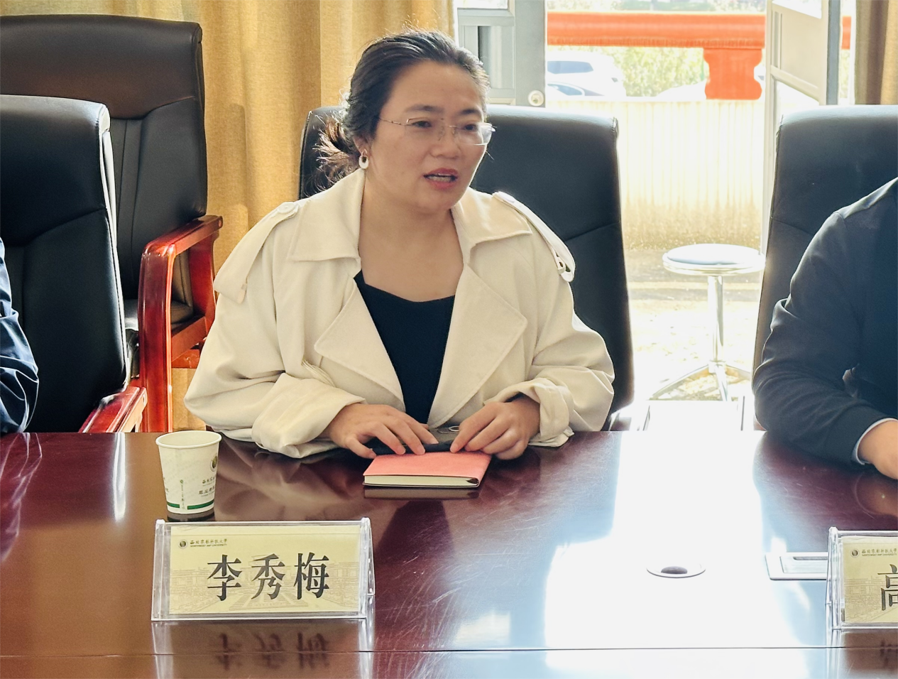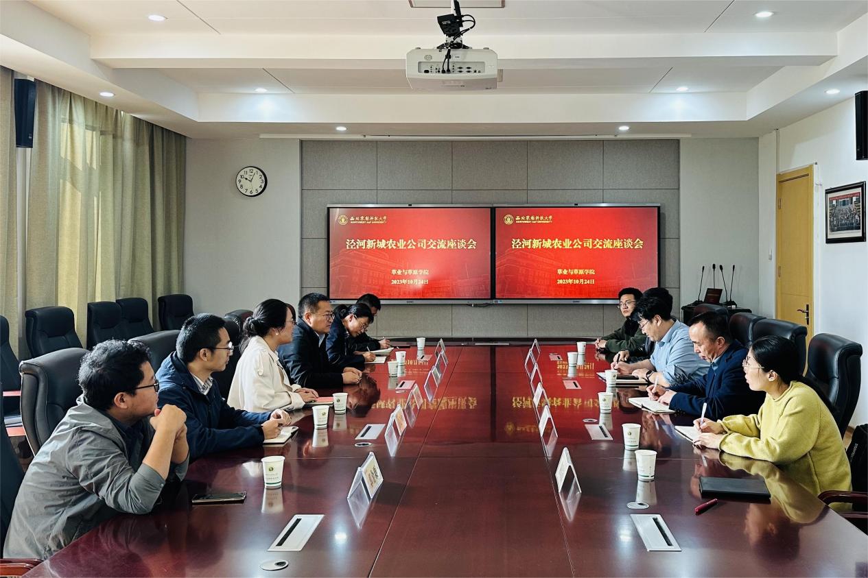 为进一步推动校企合作,加强草业科技的创新和转化,10月24日泾河新城农业公司总经理高正虎,半亩方塘农业科技有限公司总经理李秀梅一行来哔咔漫画 就校企合作、实习就业等方面展开了深入交流。哔咔漫画 副院长(主持工作)杨培志、副院长温仲明、许岳飞副教授,曹玉曼副教授等6人参加了座谈会。