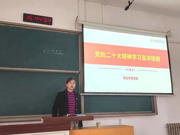 11月16日,学院党委书记苏蓉在3312教室为学院全体研究生党员作了题为“党的二十大精神学习宣讲提纲”的精神宣讲。