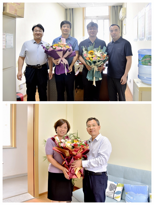 杨培志、温仲明副院长和阮鹏副书记分别看望龙明秀教授,许岳飞、何树斌副教授